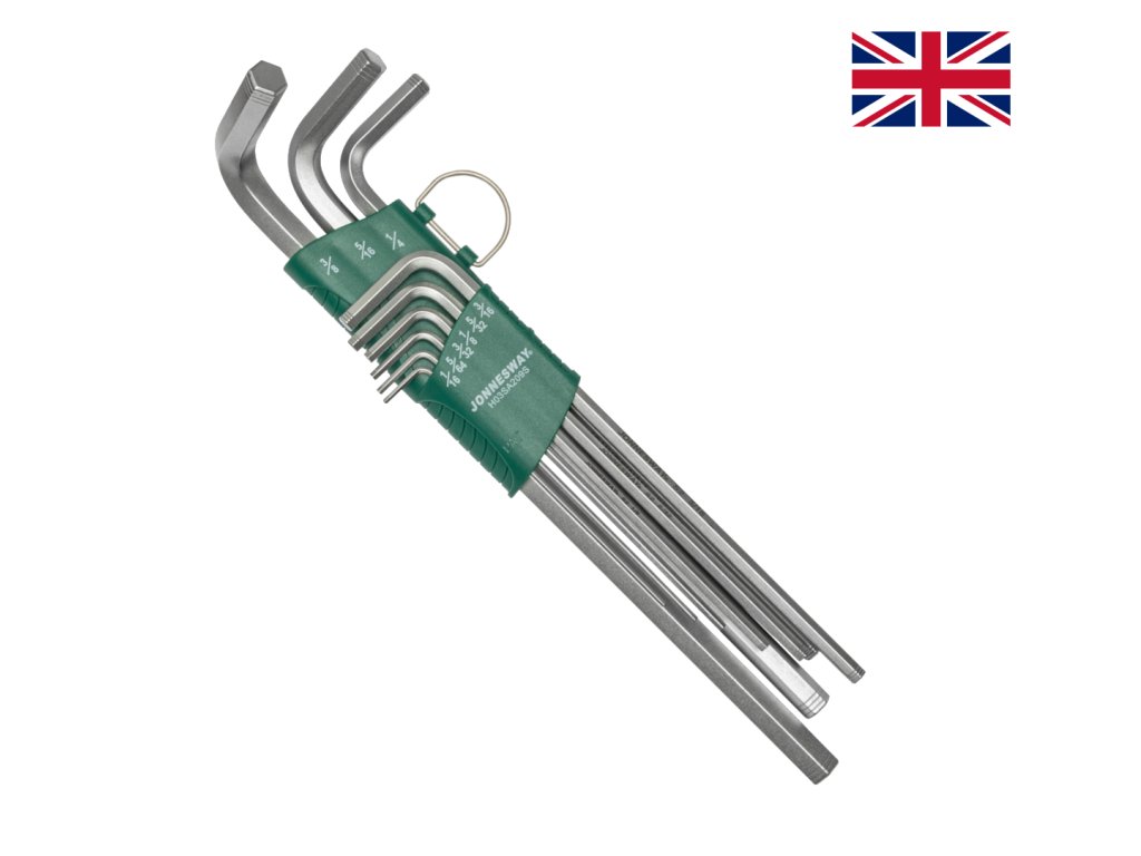 Sada klíčů Imbus, palcové, extra dlouhé, 9 kusů - JONNESWAY H03SA209S
