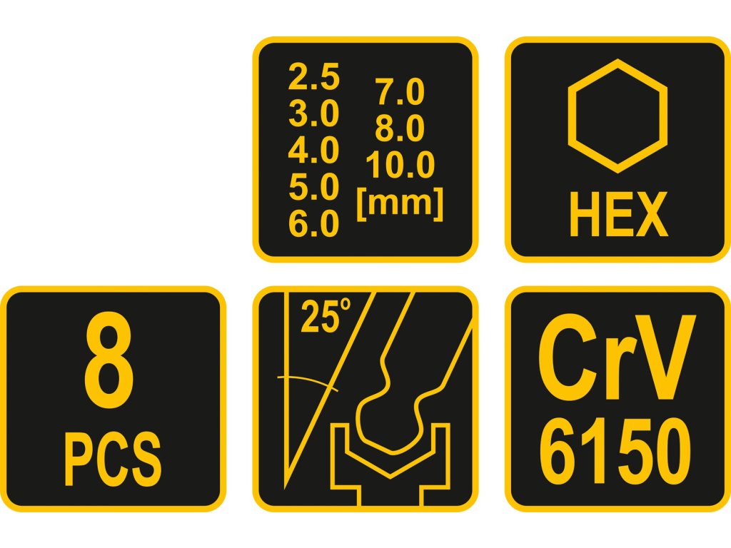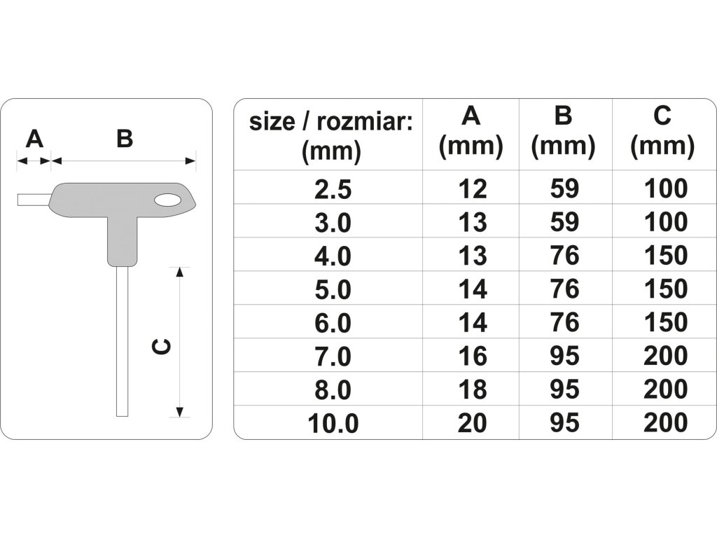 | Velikosti klíčů | 2,5; 3; 4; 5; 6; 7; 8; 10 mm |