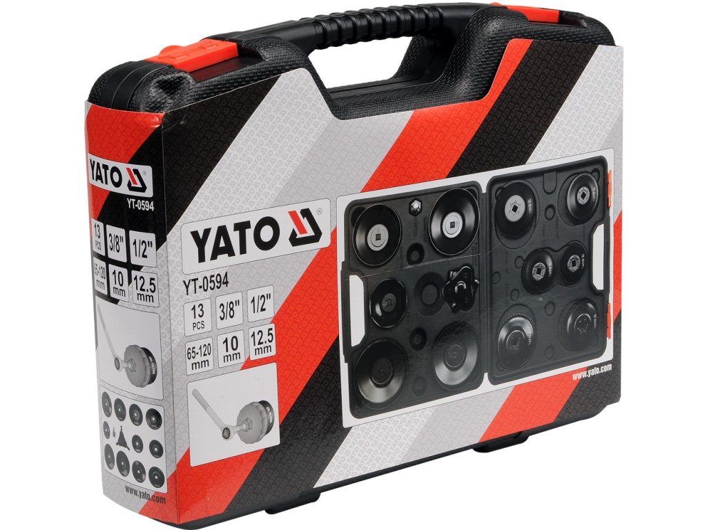 Jednotlivé misky mají zakončení velikosti 3/8". Souprava obsahuje 11 miskových klíčů, nastavitelný klíč s rozsahem 63 - 102 mm a redukci 3/8" - 1/2“.