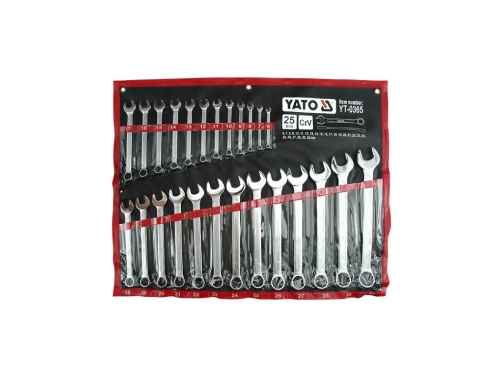 Sada očkoplochých klíčů Yato vyrobených z chromvanadiové slitiny oceli, povrch je částečně satinovaný a leštěný do vysokého lesku. AS-Drive je vylepšený profil u nástrčných a očkových klíčů, v tomto případě očka.
