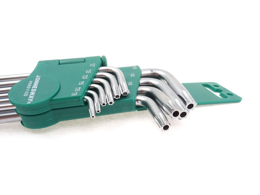 Bezpečnostní klíče TORX, velikosti T9 až T50, v plastovém pořadači, 10dílná sada – JONNESWAY H08S110S