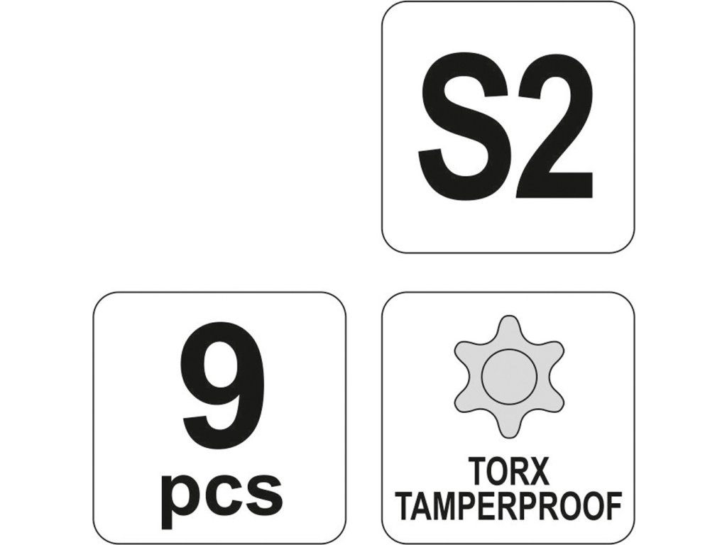 V balení jsou Torx klíče T10; T15; T20; T25; T27; T30; T40; T45; T50 délek 87 - 216 mm.