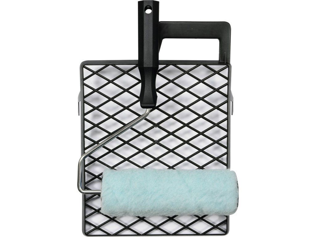 Malířská / lakýrnická sada válečku s rukojetí a otírací mřížkou. Váleček je z materiálu vestan, vhodný pro většinu nátěrových hmot, barev a laků.