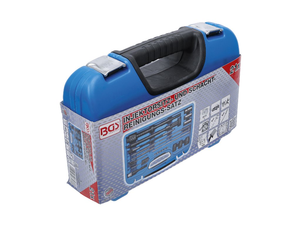 Praktická sada obsahuje vše potřebné pro čištění šachet a úpravu sedel vstřikovačů.