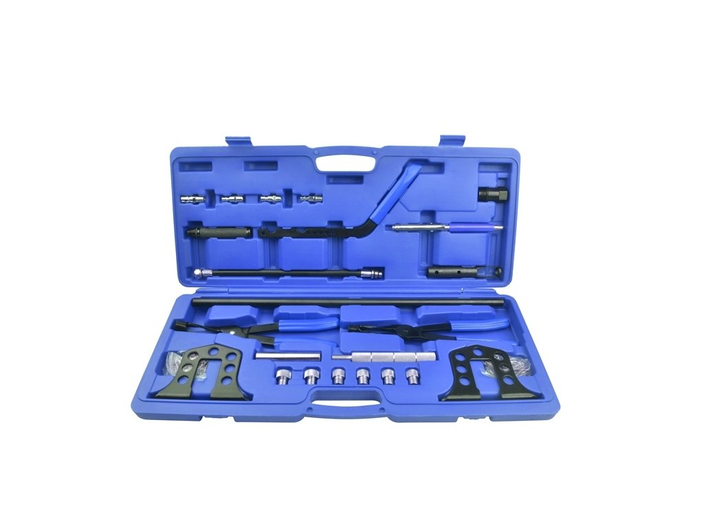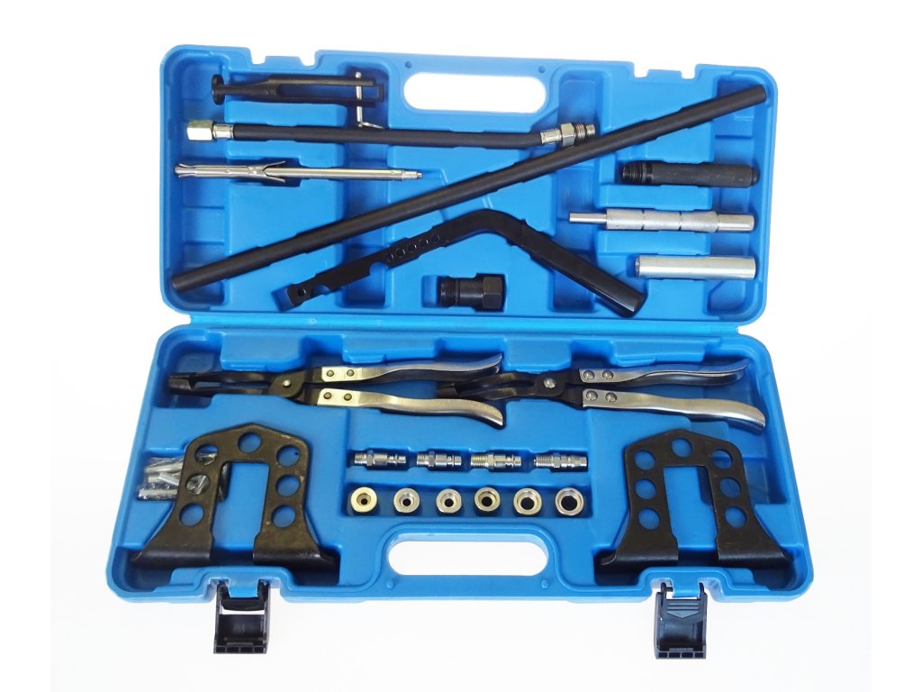 Souprava přípravků a nástrojů na demontáž OHV a OHC ventilů bez nutnosti demontáže hlavy motoru.
