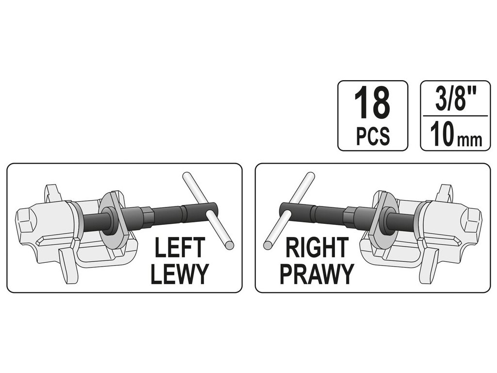 V sadě se nachází 18 ks součástí pro montáž. Obsahuje levé i pravé nástroje, pomáhá předejít poškození pístu a obložení.