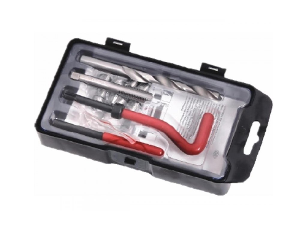 Součástí sady je vrták, závitník, vyrážeč, šroubovák a 10 ks závitových vložek. Vrták a závitník je vyroben z kvalitní oceli HSS 4341. Sada je dodávána v praktickém plastovém obalu.
