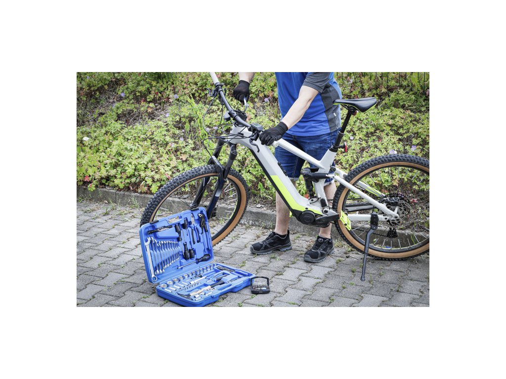 Dodáváno v bytelném kufru z pevného plastu. Každý kus nářadí v něm má svoje místo, takže máte neustále přehled o tom, zda je set kompletní a nic nechybí.