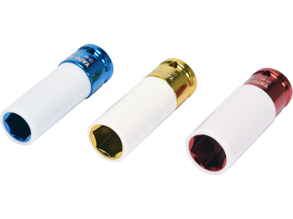 Zhotovení z chrom-molybdenové oceli SCM-440 s měkkou, plastovou objímku, chránící ráfky před poškozením. Nástavce mají chromovaný povrch, barvený pro snadné a rychlé rozlišení velikosti.