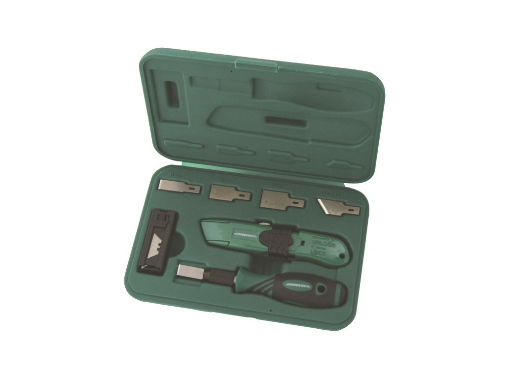 Souprava škrabek a nožů, různé rozměry, sada 27 dílů v plastové kazetě – JONNESWAY MKS27