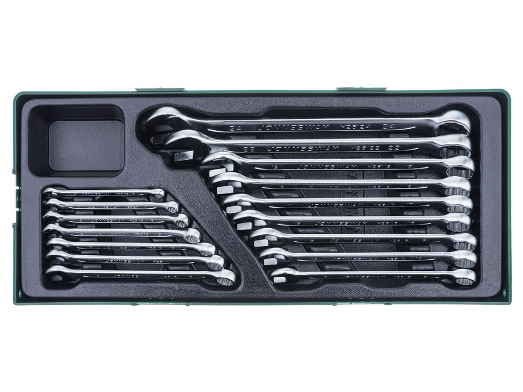 Plastový modul, rozměr 370 x 140 x 50 mm: Souprava 16 ks očkoplochých klíčů 6-24 mm – JONNESWAY W26116SP