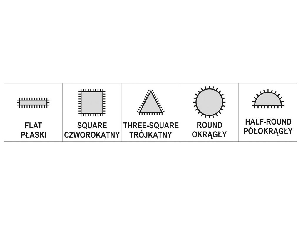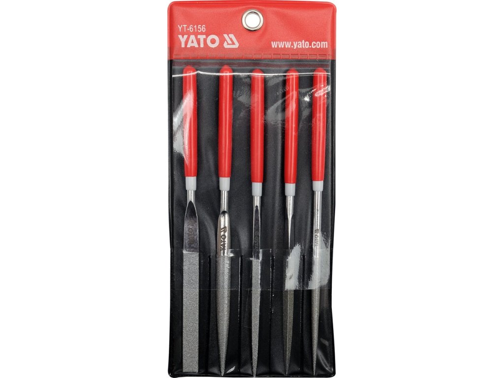 Sada je složena z 5 kusů pilníků různých profilů (plochý, čtvercový, trojúhelníkový/ kulatý a půlkulatý) s rozměry 5x180 mm. Délka brusné části 70 mm.