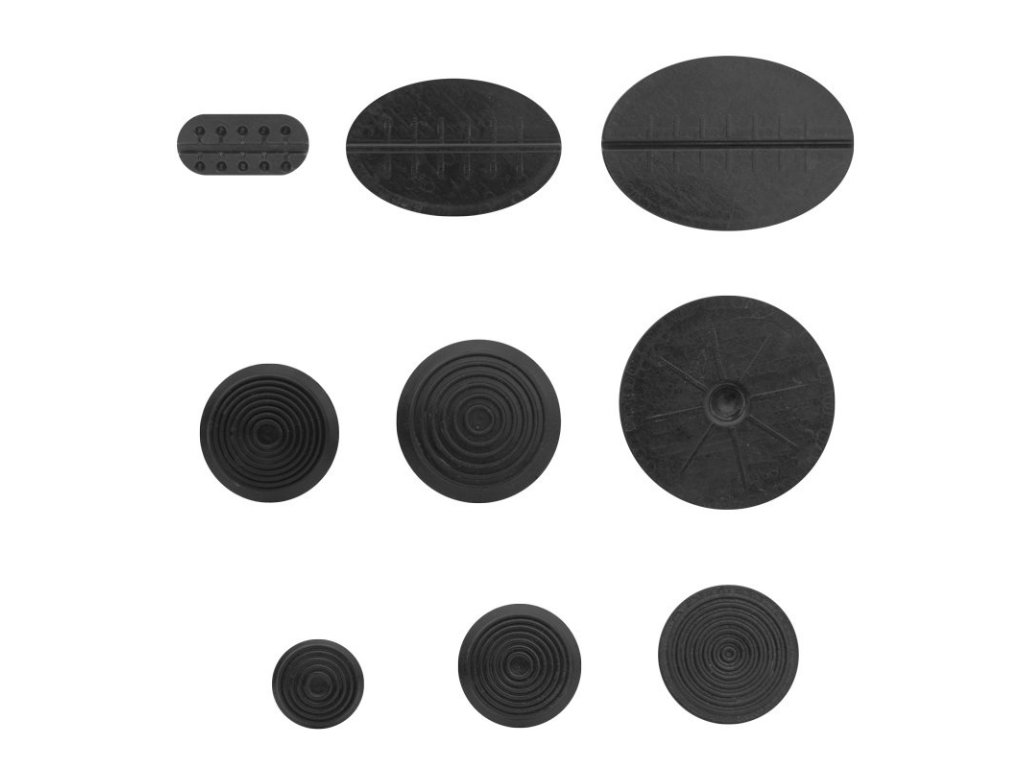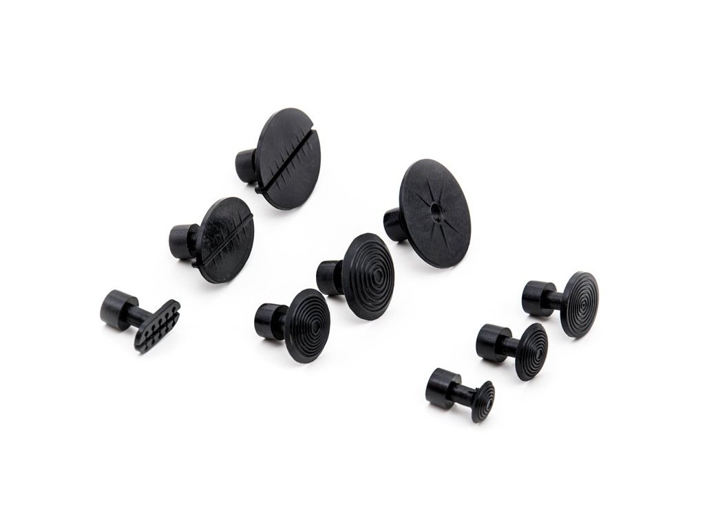 Sada plastových nalepovacích vytahovacích adaptérů, pro opravy karoserie metodou PDR pomocí vytahovacího můstku, 9 ks – Hammer GT-7.