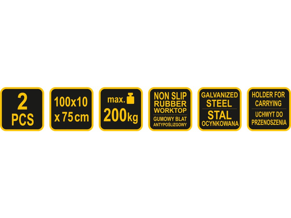 Sada stabilních pracovních základen se skládacím mechanismem.