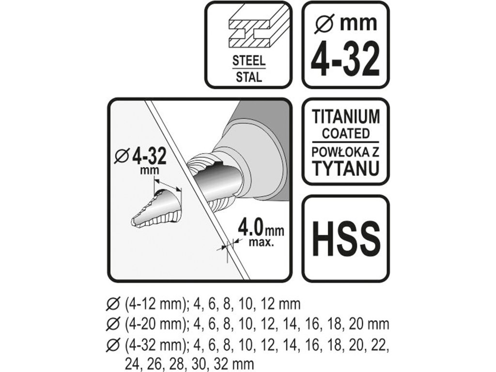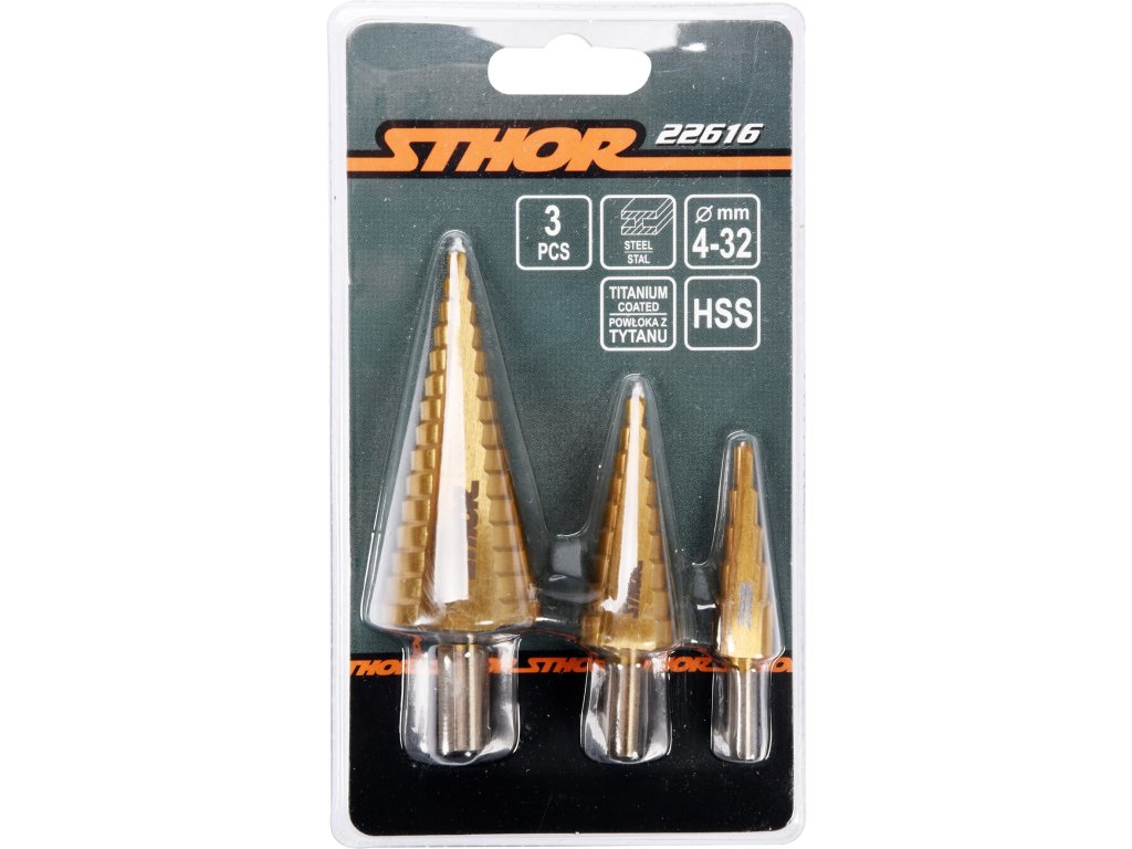 Sada stupňovitých vrtáků 3ks 4-32 mm