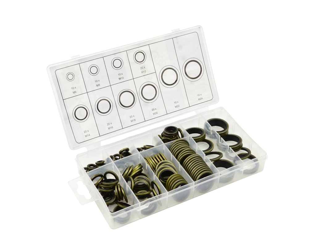 Sada těsnicích kroužků ocelových/gumových, M6-M26, sada 150 ks - GEKO G03606