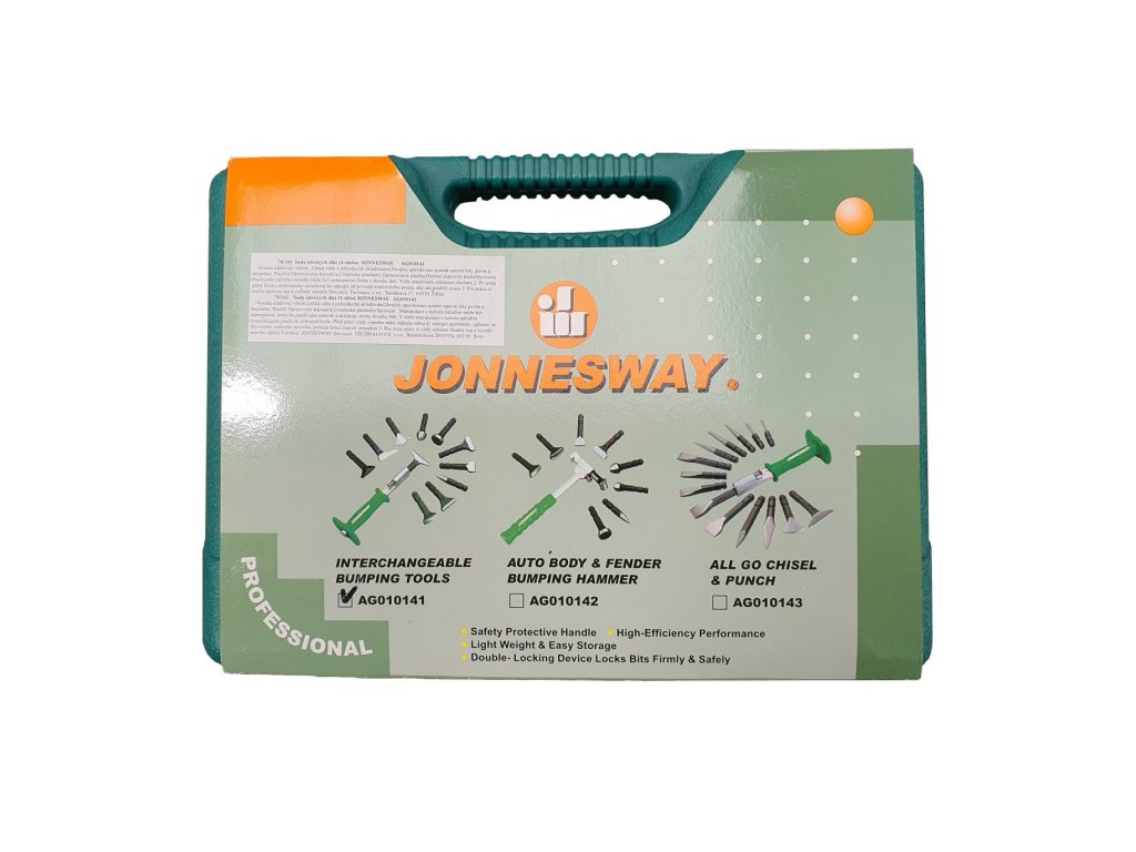 11dílná sada úderných dlát Jonnesway AG010141 Vyměnitelná úderná dláta na karoserii a nárazník. Všechny části jsou vyrobeny z chrom-vanadiové oceli. Díky tomu snesnou i skutečně náročné nasazení a mají dlouhou životnost. Vyměnitelné části různých typů a funkcí vyvinuté pro různé druhy prací (opravování karosérií, práce s plechem, modelování). Nový patentový design, dvojzámkové zařízení drží dláto pevně a bezpečně. Nízká váha a jednoduché skladování. Vysoce účinné nářadí pro efektivní práci. Pro rychlou výměnu dlát zatlačte dolů dvojitou západku.Doplňkové parametry