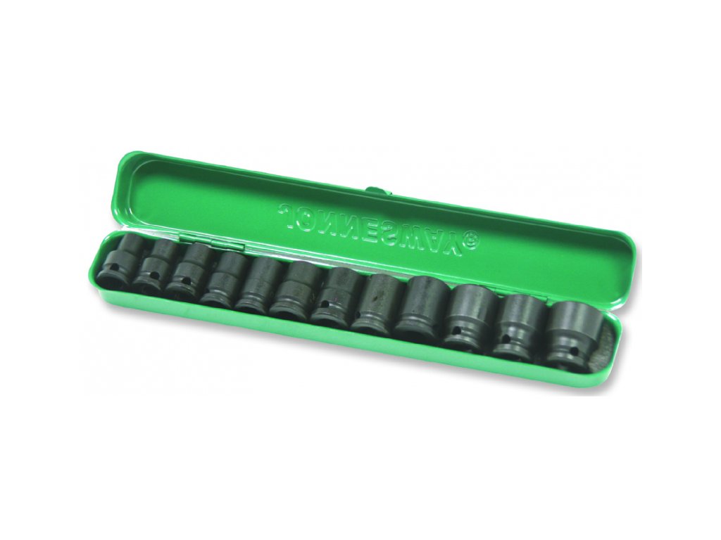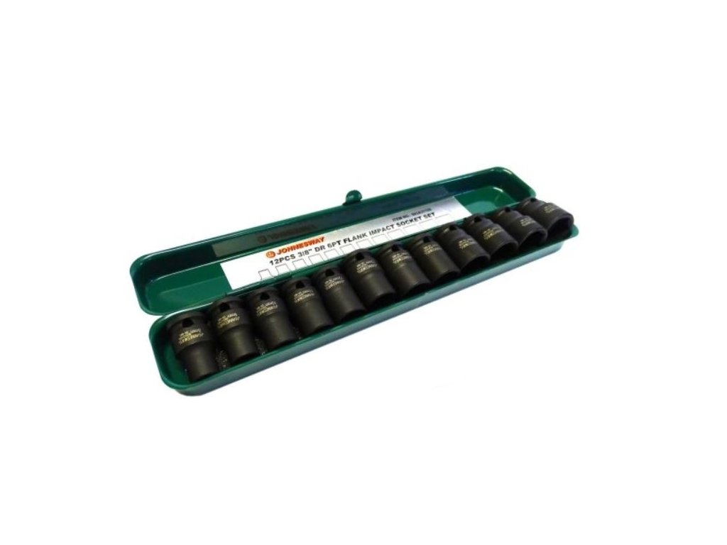 Sada úderových hlavic 3/8", 12 ks, 8-19 mm, šestihran, v plechovém obalu – JONNESWAY S03A3112S.