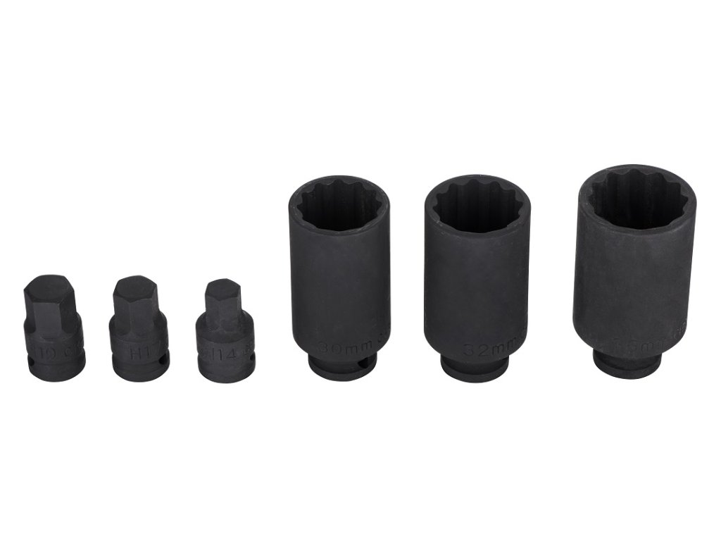 3x nástrčná úderová hlavice, 12hranná, velikosti: 30, 32, 36 mm