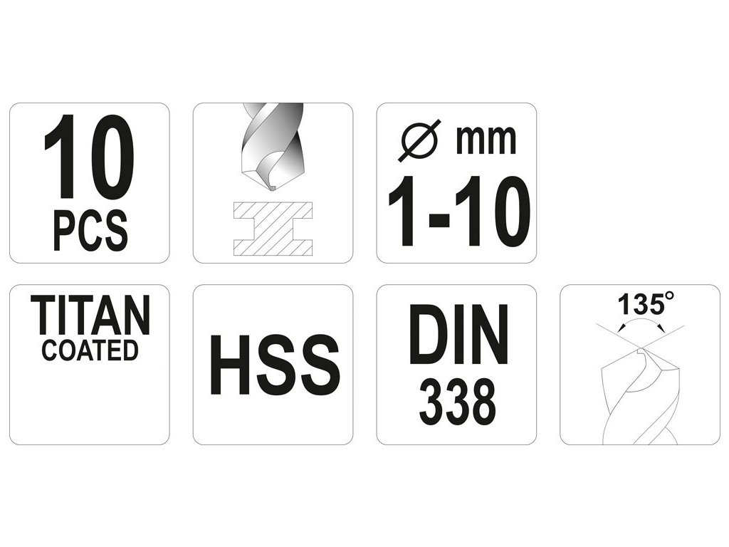 Sada vrtáků do železa HSS-TiN 10ks 1-10mm