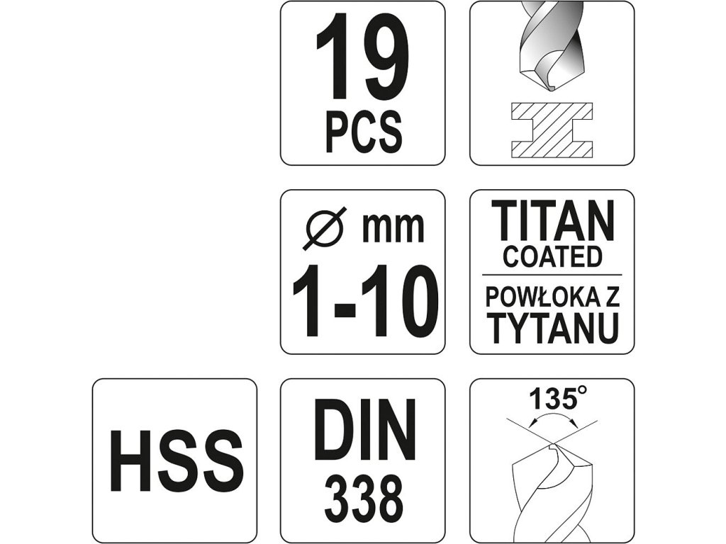 Sada vrtáků do železa HSS-TiN 19ks 1-10mm