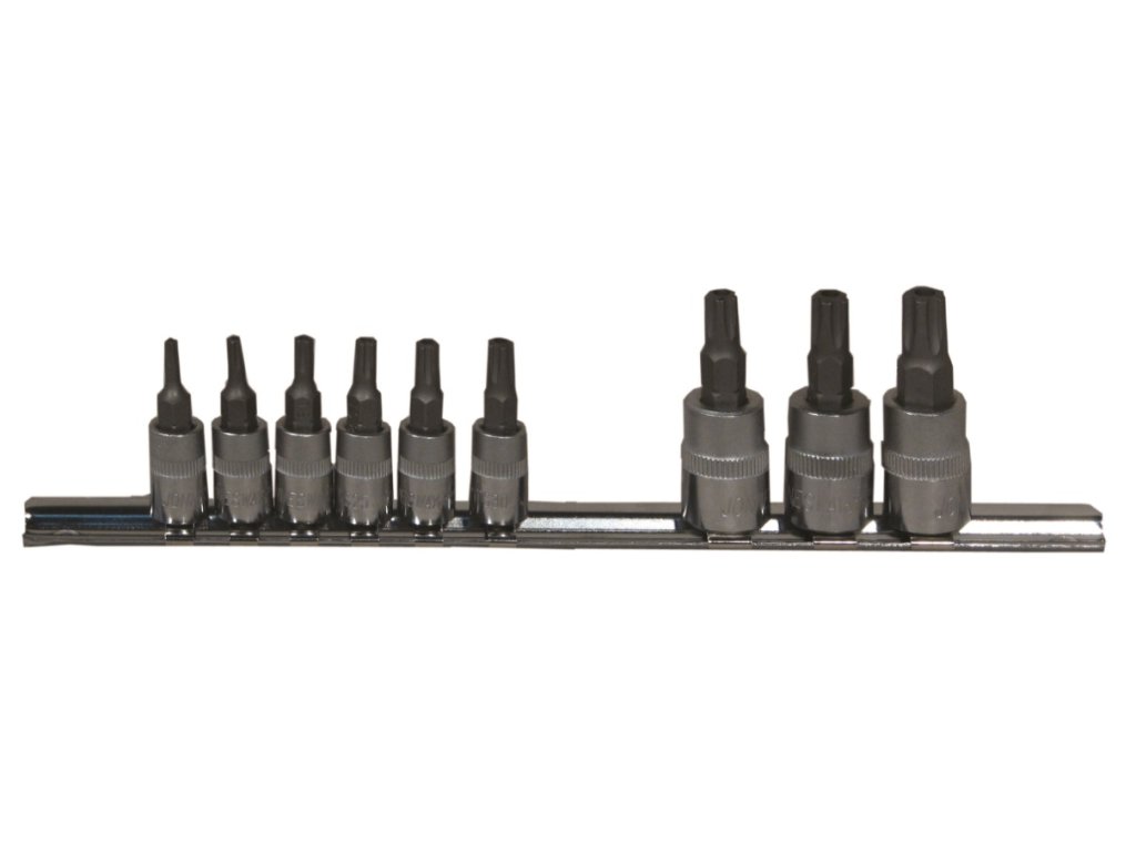 Souprava zástrčných hlavic profilu Torx s otvorem Jonnesway S08H23TS9S 5hranné, velikosti 1/4“ a 3/8“ Sada obsahuje: 6x klíč Torx Plus 1/4", délka 38 mm: TS-10, TS-15, TS-20, TS-25, TS-27, TS-30 3x klíč Torx Plus 3/8", délka 48 mm: TS-40, TS-45, TS-50Doplňkové parametry