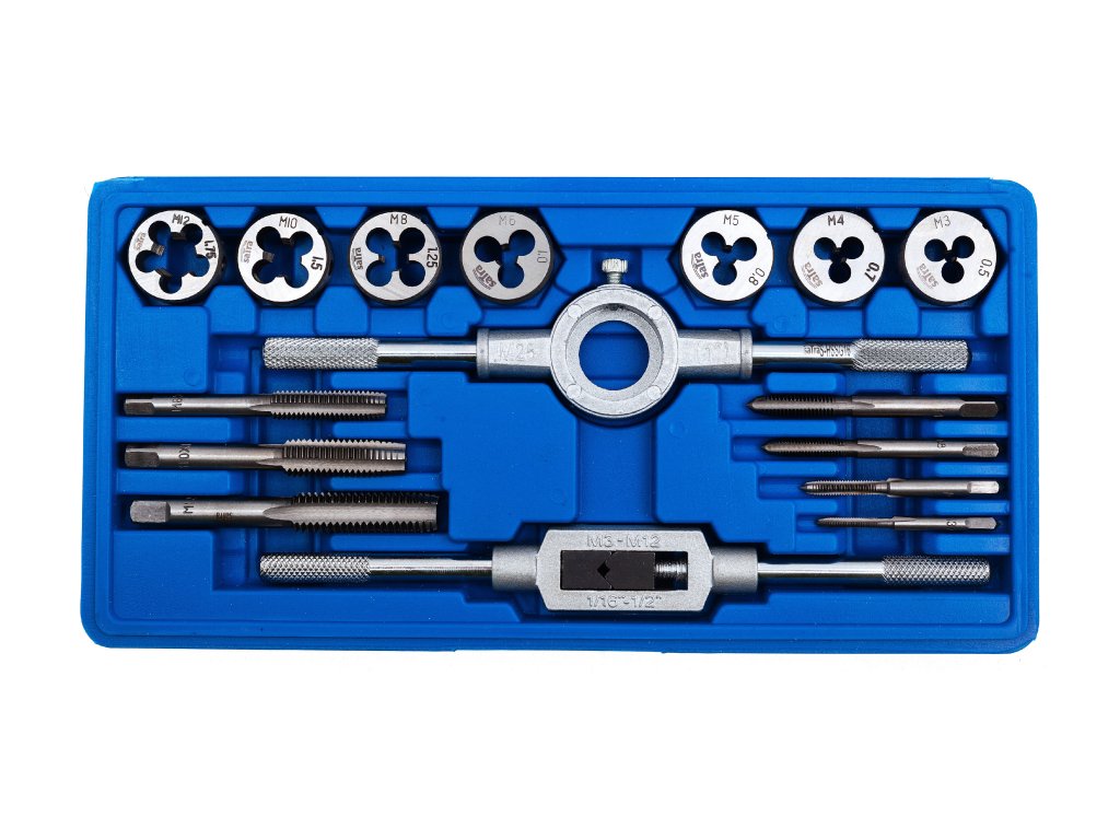 Závitníky a závitová očka (metrické), velikosti M3-M12, sada 16 ks v plastovém kufříku – SATRA S-HSSG16