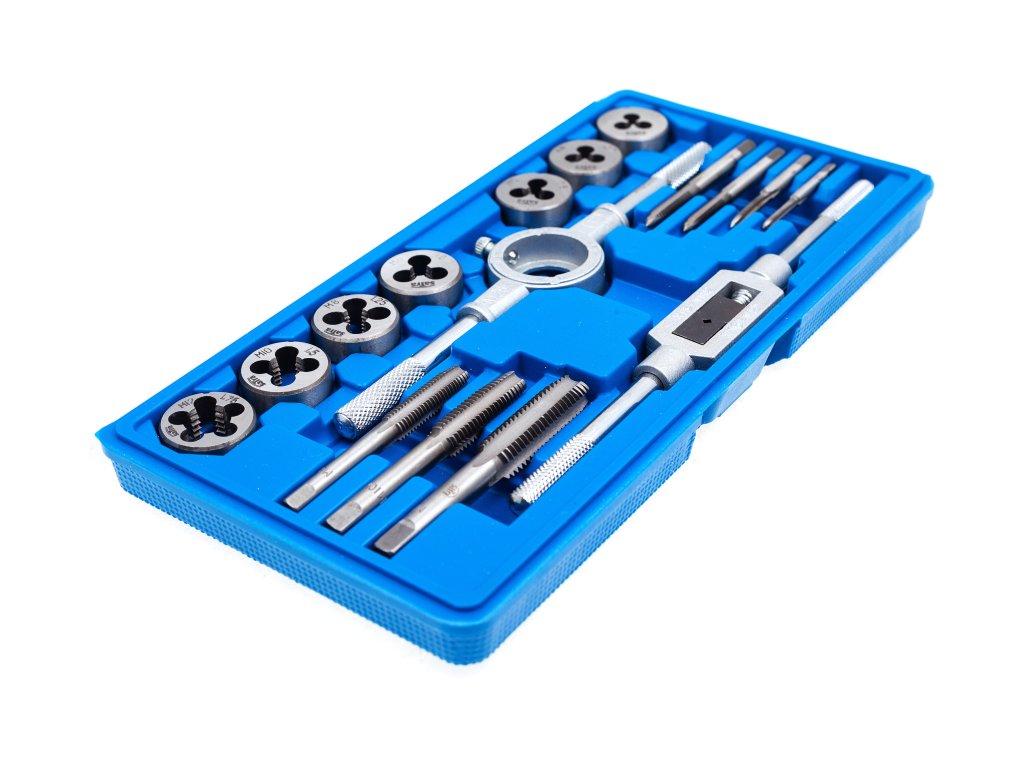 Praktická souprava základních velikostí závitníků a závitových oček na vyřezávání závitů, která nesmí chybět v žádné dílně.