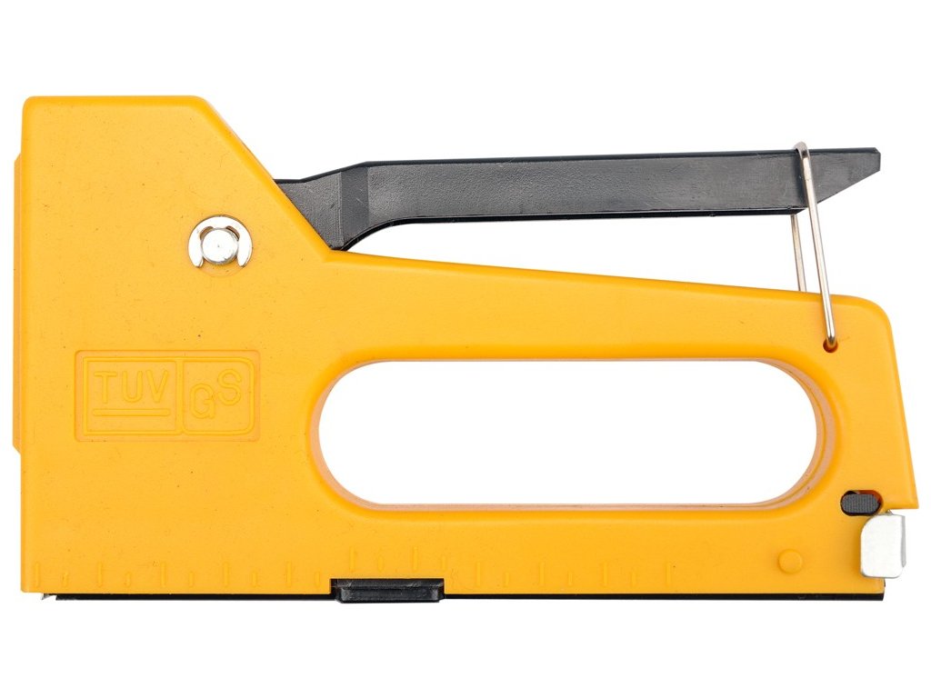 Plastová sponkovačka Vorel 71040. Je možno použít spony délky v rozmezí 4 - 8 mm.