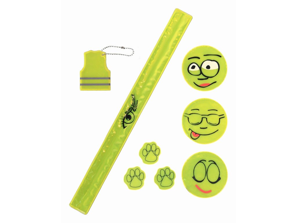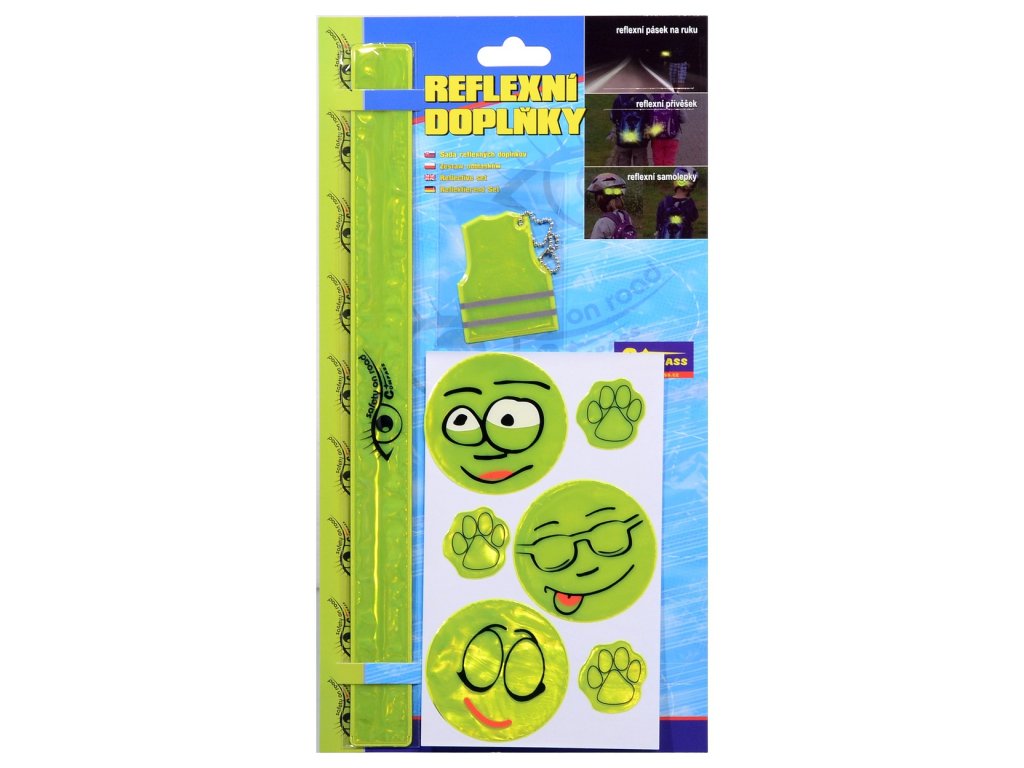 sada reflexních samolepek - k nalepení na vhodné místo pro zvýšení viditelnosti.