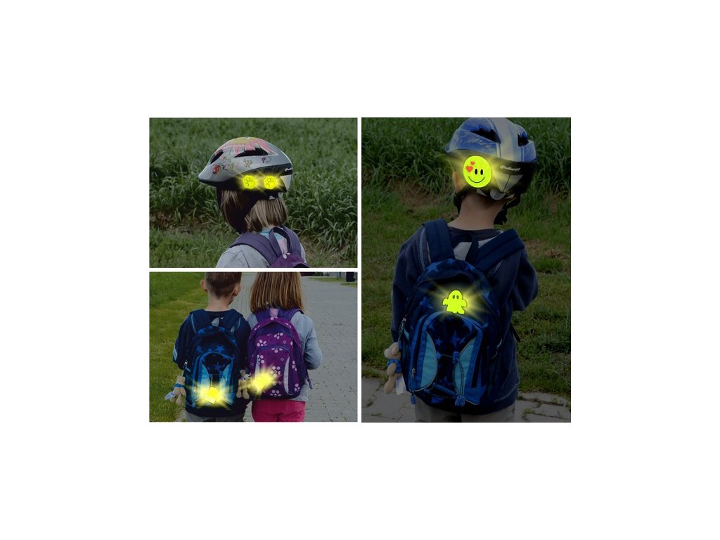 Moderní, zábavné a především na velkou vzdálenost dobře viditelné samolepky, vhodné i pro děti. Zejména za snížené viditelnosti či v šeru několikanásobně prodlužují vzdálenost, na kterou řidič zpozoruje chodce.