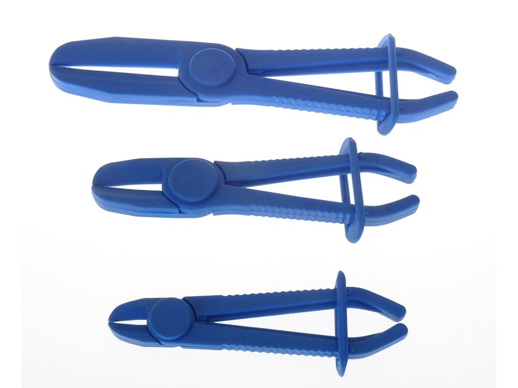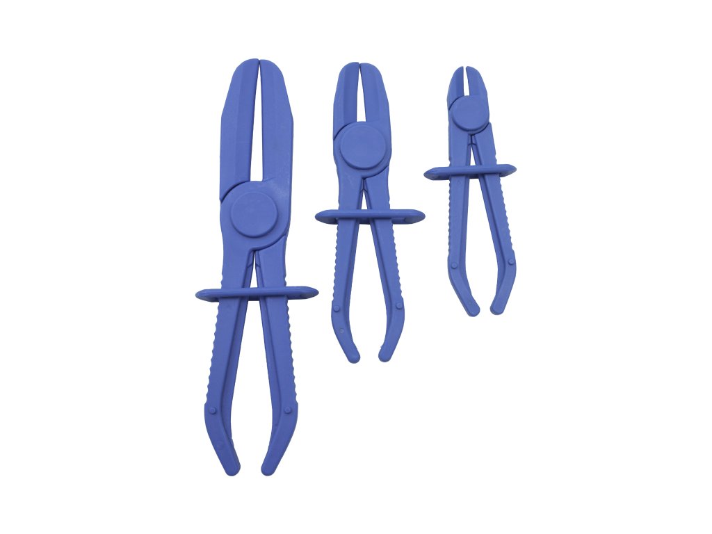 Souprava tří plastových kleští k sevření (zaškrcení) hadic o průměru až 60 mm. Typicky může jít o hadice palivového nebo chladícího systému, které je nutné kvůli servisu odpojit. Uškrcením hadic se zabrání zbytečnému úniku kapalin.