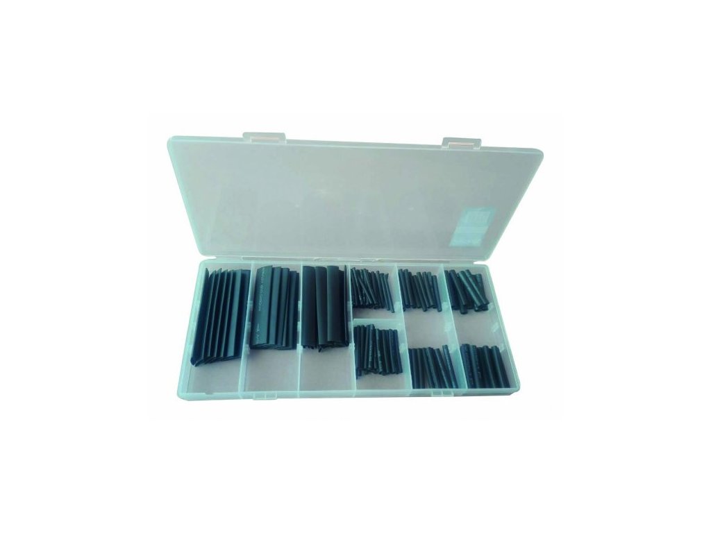 Smršťovací bužírky – hadičky, různé délky a průměry, černá barva, sada 127 kusů v plastové krabičce – ASTA A-THERM127