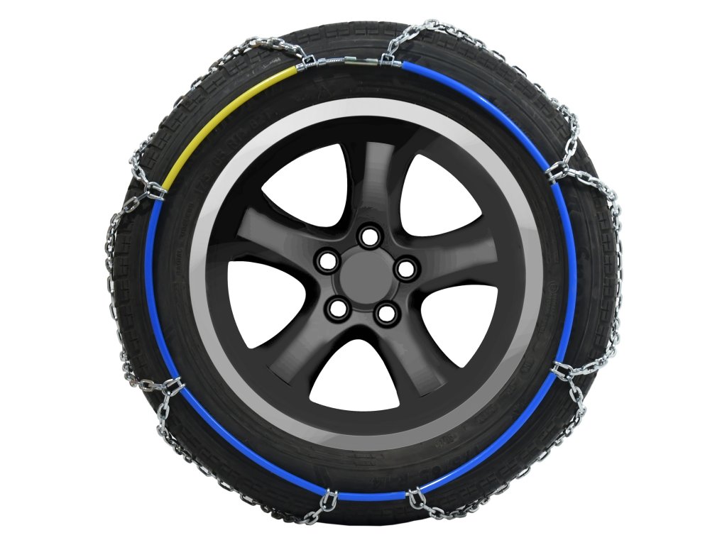 Sněhové řetězy se zesílenými oky, pro osobní vozidla do hmotnosti 2200 kg, splňující evropské normy včetně v Rakousku vyžadované "ÖNORM V 5117".