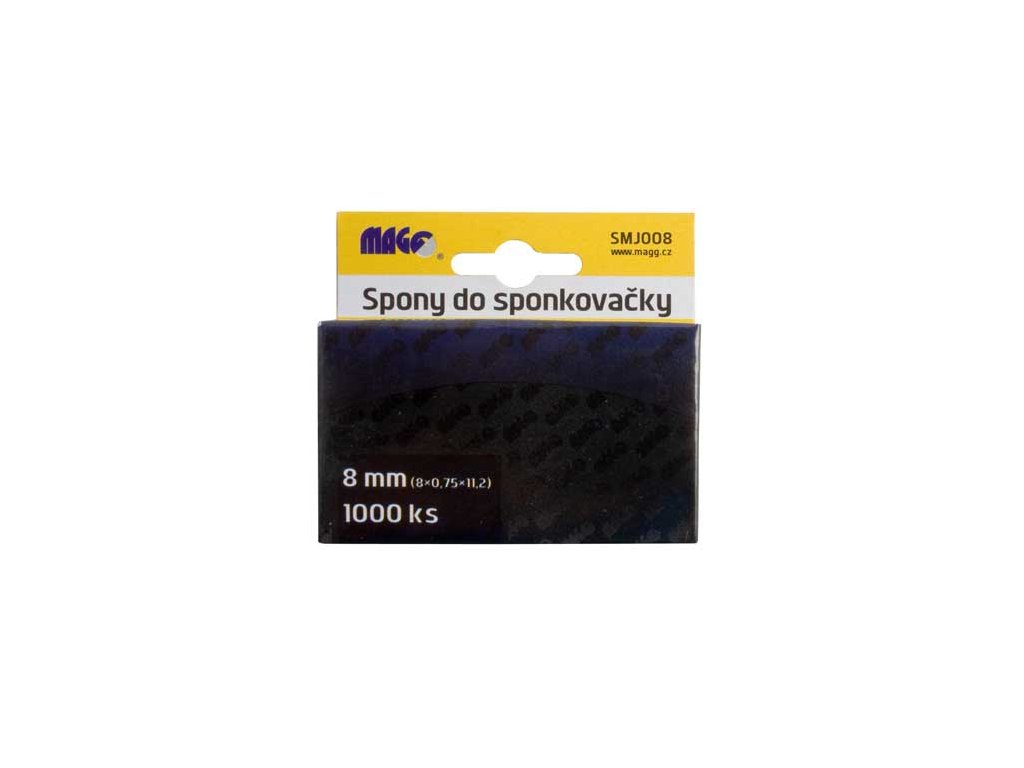 Spony pro sponkovačku - sešívačku MAGG SMJ008 Rozměry: 8 x 0,75 x 11,2 mm Obsah balení: 1000 kusů sponekDoplňkové parametry