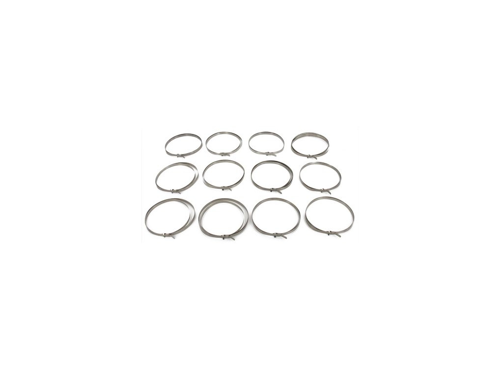 Upínací – stahovací spony, celková délka 760 mm, sada 12 kusů – SKF VKJML 01003 Univerzální spony např. pro stažení a zajištění manžet homokinetických kloubů na nápravách osobních a menších užitkových vozidel apod. Díky speciální konstrukci lze sponu upravit na širokou škálu průměrů (pásek se navíjí tzv. pod sebe). Zajištění se provádí ohnutím konce u spony. Šířka: 5 mmDoplňkové parametry