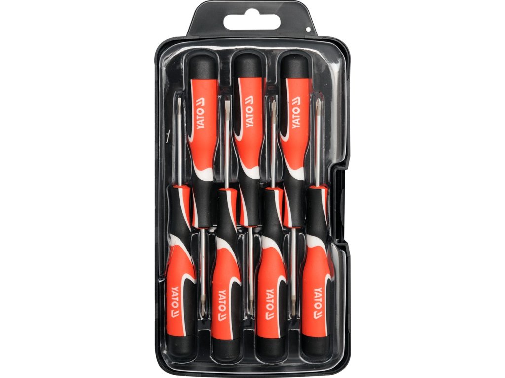 Sada přesných šroubováků. Vytvrzený magnetický hrot / usnadňuje práci s malými šrouby /. Rukojeť je vyrobena z třísložkového materiálu. Rukojeť s otočným překrytím usnadňující a zrychlující šroubování.