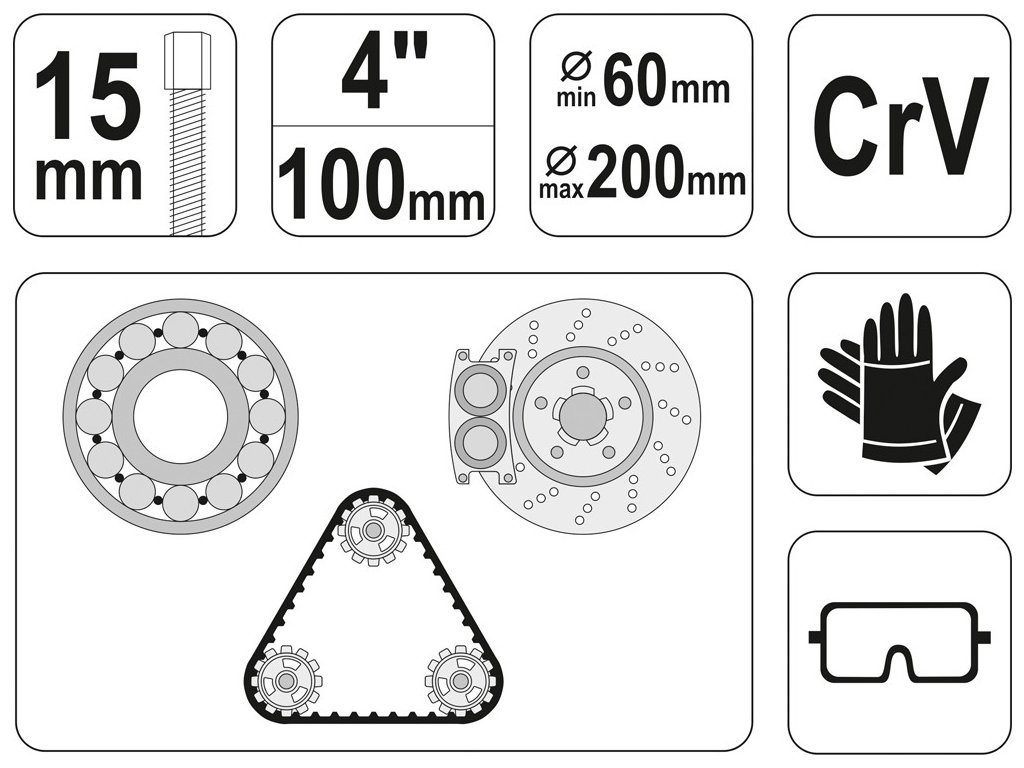 Stahovák ložisek 60 mm - 200 mm vyrobený z chrom-vanadové oceli CrV6150. Vysoce kvalitní produkt pro profesionály zajišťující dlouhodobý a spolehlivý provoz.
