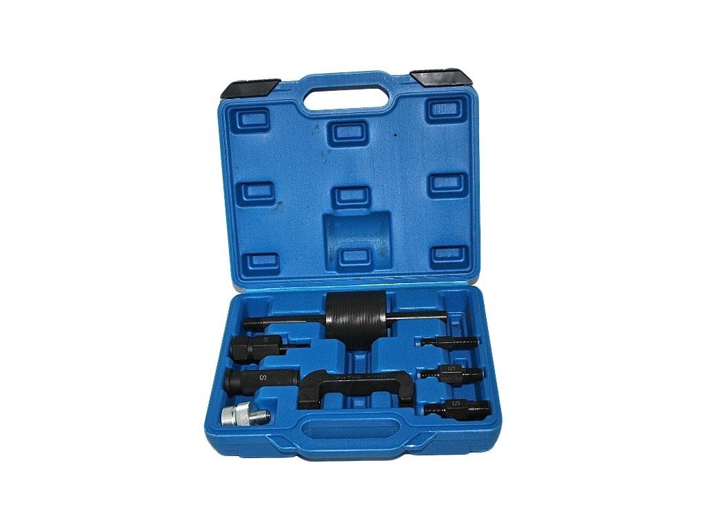 Stahovák na demontáž vstřikovačů, tzv. vstřiků, s reverzním – kluzným kladivem SATRA S-IES9 Určeno pro zatuhlé či tzv. zapečené či jinak obtížně demontovatelné vstřikovače paliva značek Bosch a Delphi ve vznětových (dieselových) motorech vozidel Mercedes-Benz a BMW. Přípravek se pomocí příslušného adaptéru připojí ke vstřiku, který se následně rázovým kladivem vyklepe. Modely: Mercedes-Benz CDI (motory OM611, OM612, OM613), BMW 525D, 530D Souprava obsahuje: - reverzní kladivo, hmotnost 1,75 kg, délka 350 mm - 2x demontážní adaptér - kloub - demontážní přípravek M12 x 1.75 - adaptér M17 x 1,0 - adaptér M27 x 1,0 Dodáváno v plastovém kufru.Doplňkové parametry
