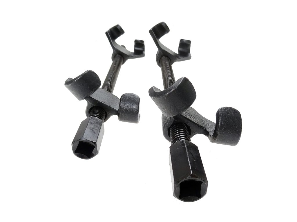 Nástroj má vyprofilované dvouramenné úchyty pro pevné uchopení pružiny, a díky jemnému stoupání závitu lze pružinu stlačit s minimální námahou. Před každým použitím je vhodné zkontrolovat závity a namazat je. Stahování pružin bude jednodušší oproti suchým závitům a lubrikace je ochrání proti nadměrnému opotřebení.