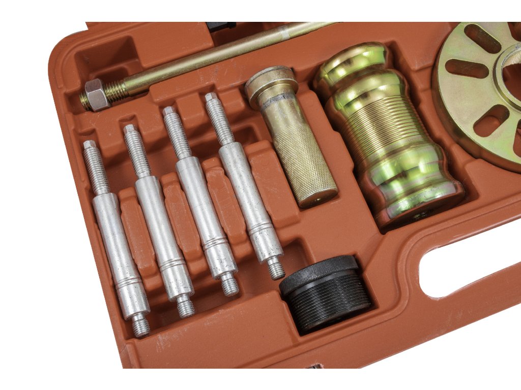 Univerzální sada pro stahování nábojů, ložisek a poloos pomocí úderů reverzním kladivem, nebo použitím centrálního tlačného šroubu.