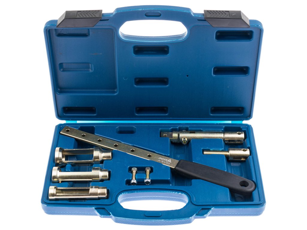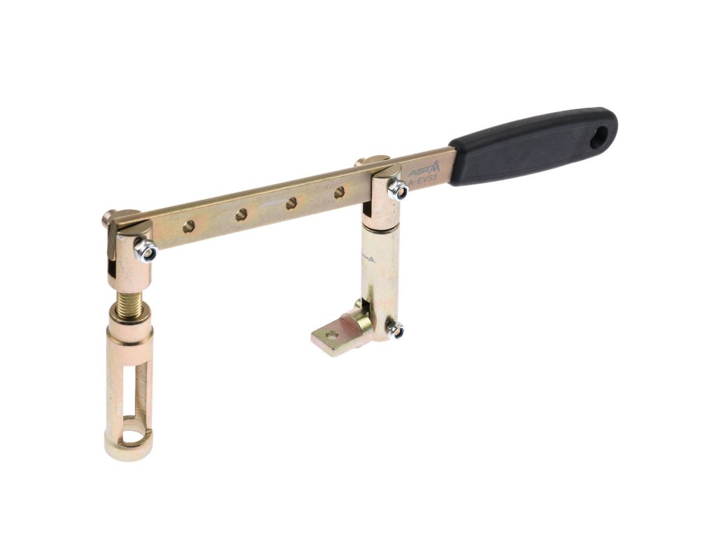 Stahovák na pružiny ventilů motoru ASTA A-EVS3 Speciální přípravek na stlačení pružin ventilů. Používá se při výměně ventilové pružiny nebo těsnění ventilového dříku. Není nutná demontáž hlavy válců, což práci usnadňuje a také zrychluje. Vhodné pro mnoho druhů motorů 8V, 12V a 16V s rozvody systému OHC (Overhead Camshaft – vačkové hřídele v hlavě motoru). Sada obsahuje: - páka na stlačení pružin, 6 otvorů, celková délka 330 mm - adaptér na stlačení pružiny, průměr 24 mm, celková délka 85 mm - adaptér na stlačení pružiny, průměr 30 mm, celková délka 85 mm - adaptér na stlačení pružiny, průměr 35 mm, celková délka 85 mm Dodáváno v plastovém kufříku.Doplňkové parametry