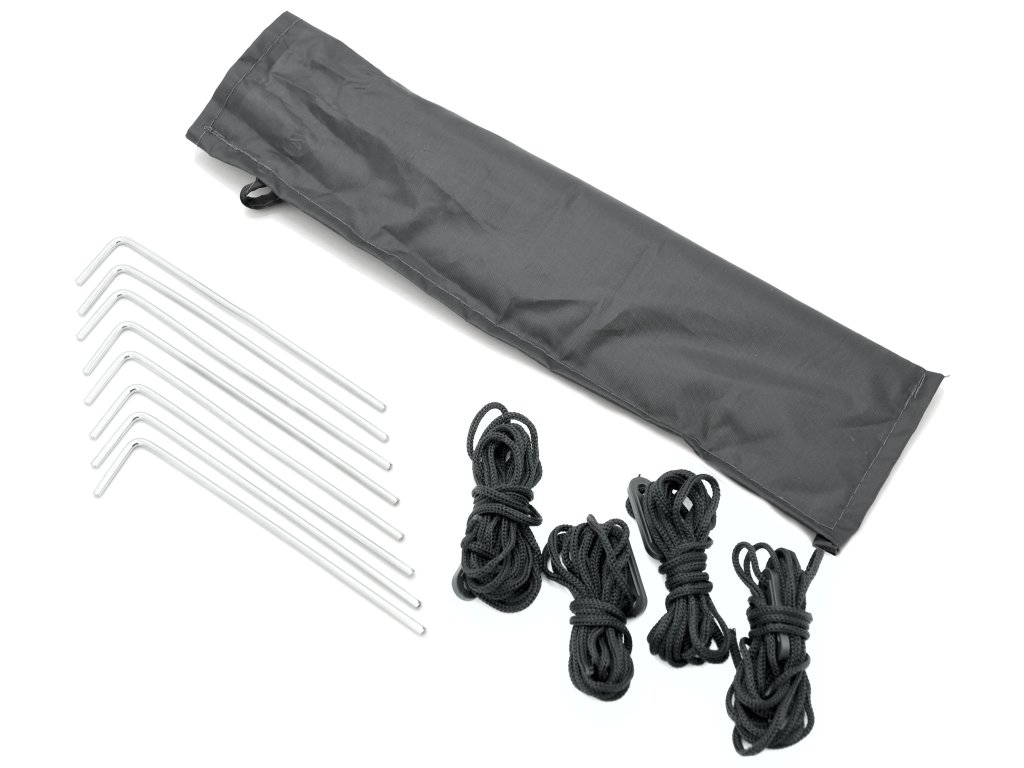 Balení obsahuje rychlorozkládací stan, sadu kolíků (8x), šňůr (4x), obal pro snadné přenášení a návod k použití.