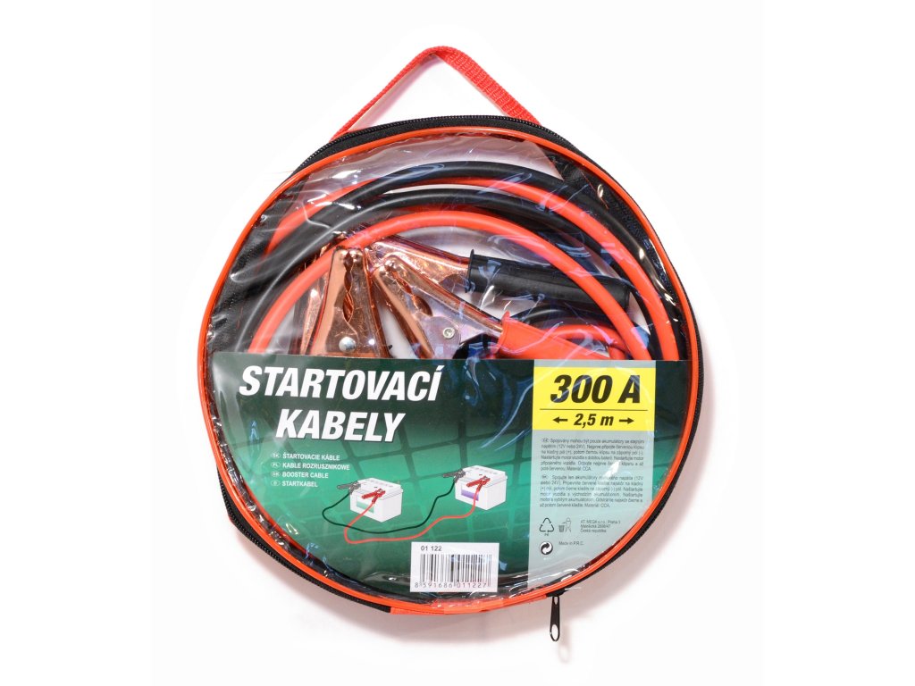 Klasické startovací kabely, barevně označené, se svorkami na akumulátor. Uzavíratelné balení, snadné uložení startovacích kabelů zpět do praktického, na zip uzavíratelného, obalu.