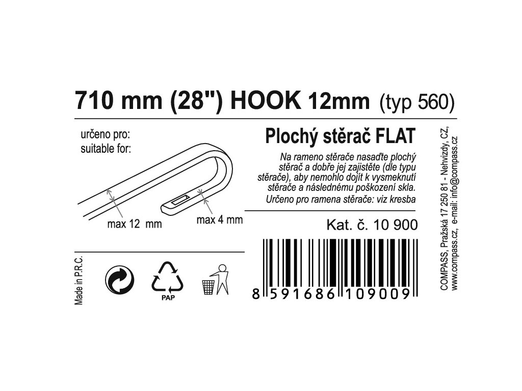 Stěrač FLAT BULK (HOOK 12mm) 28"/710mm