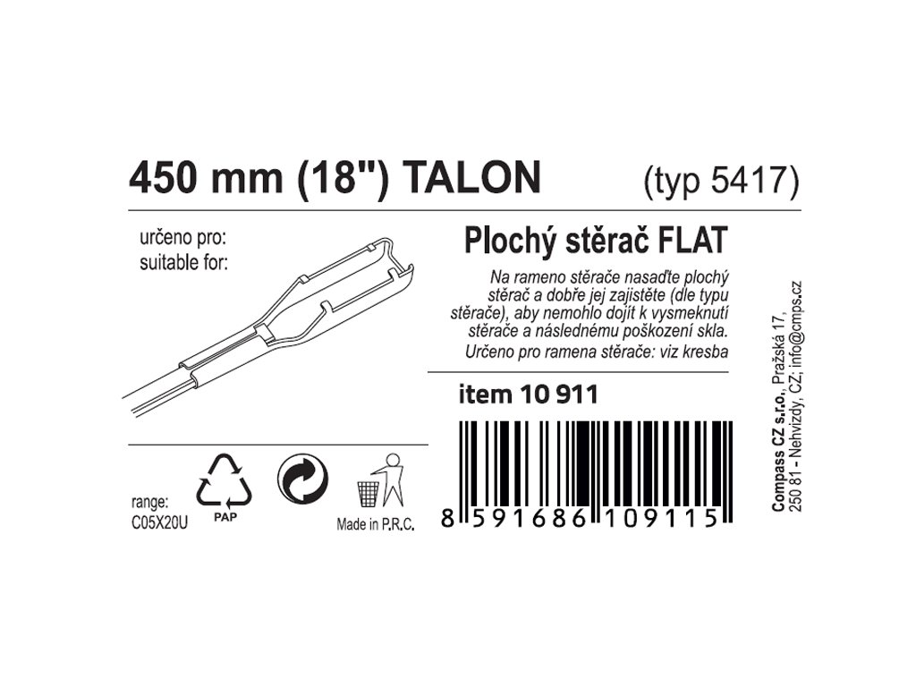 Stěrač FLAT BULK (TALON) 18"/450mm