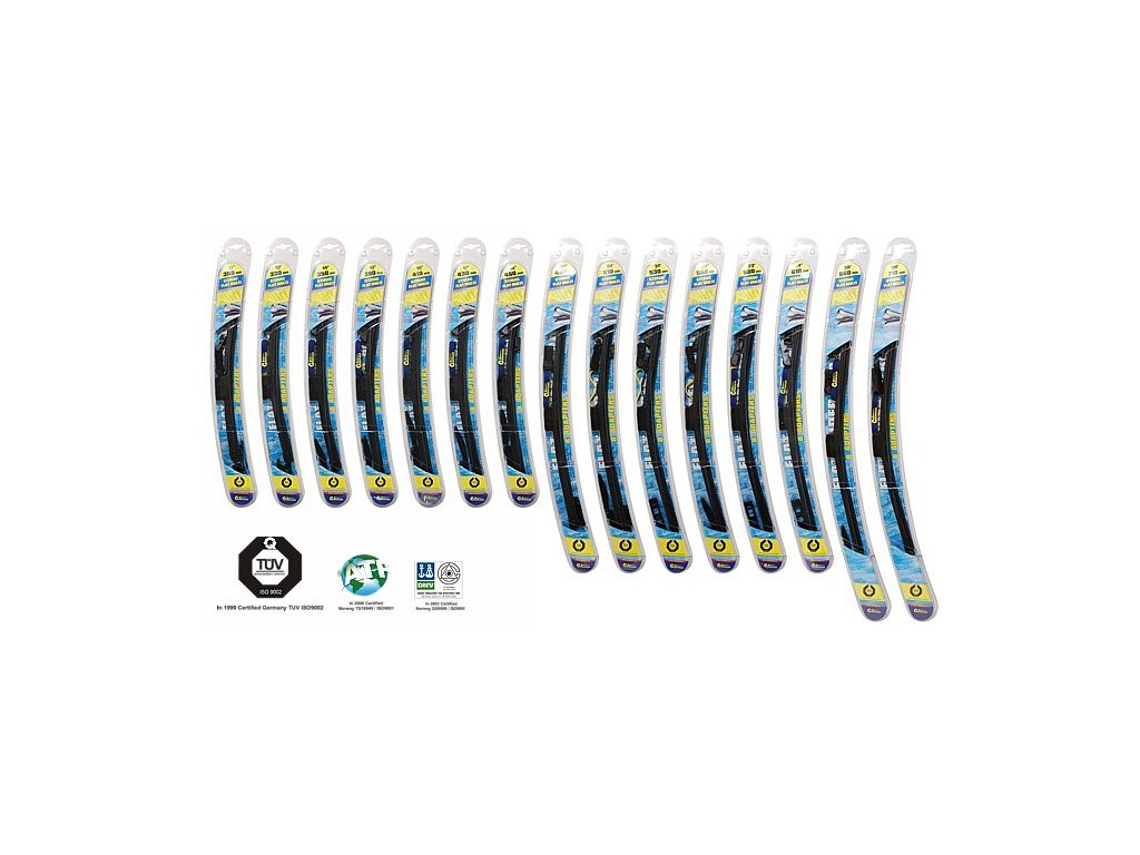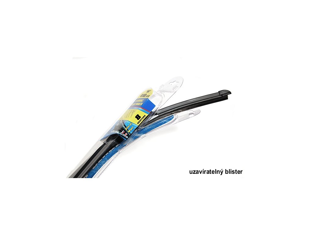 Plochý stěrač nové konstrukce, který zajišťuje důkladné a rovnoměrné stírání. Speciální uchycení, díky kterému lze pomocí přiložených adaptérů použít tento stěrač pro řadu různých zakončení ramen stěračů. Balení á 1 ks ve speciálním "otevíracím" blisteru. Tento typ plochého stěrače je osazen gumičkou s černým grafitem, umožňuje i její výměnu.