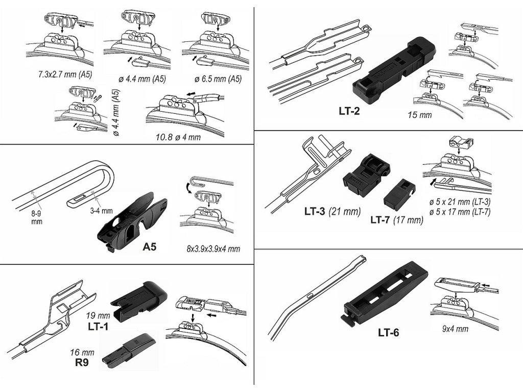 Plochý stěrač nové konstrukce, který zajišťuje důkladné a rovnoměrné stírání. Speciální uchycení, díky kterému lze pomocí přiložených adaptérů použít tento stěrač pro řadu různých zakončení ramen stěračů. Balení á 1 ks ve speciálním "otevíracím" blisteru. Tento typ plochého stěrače je osazen gumičkou s černým grafitem, umožňuje i její výměnu.