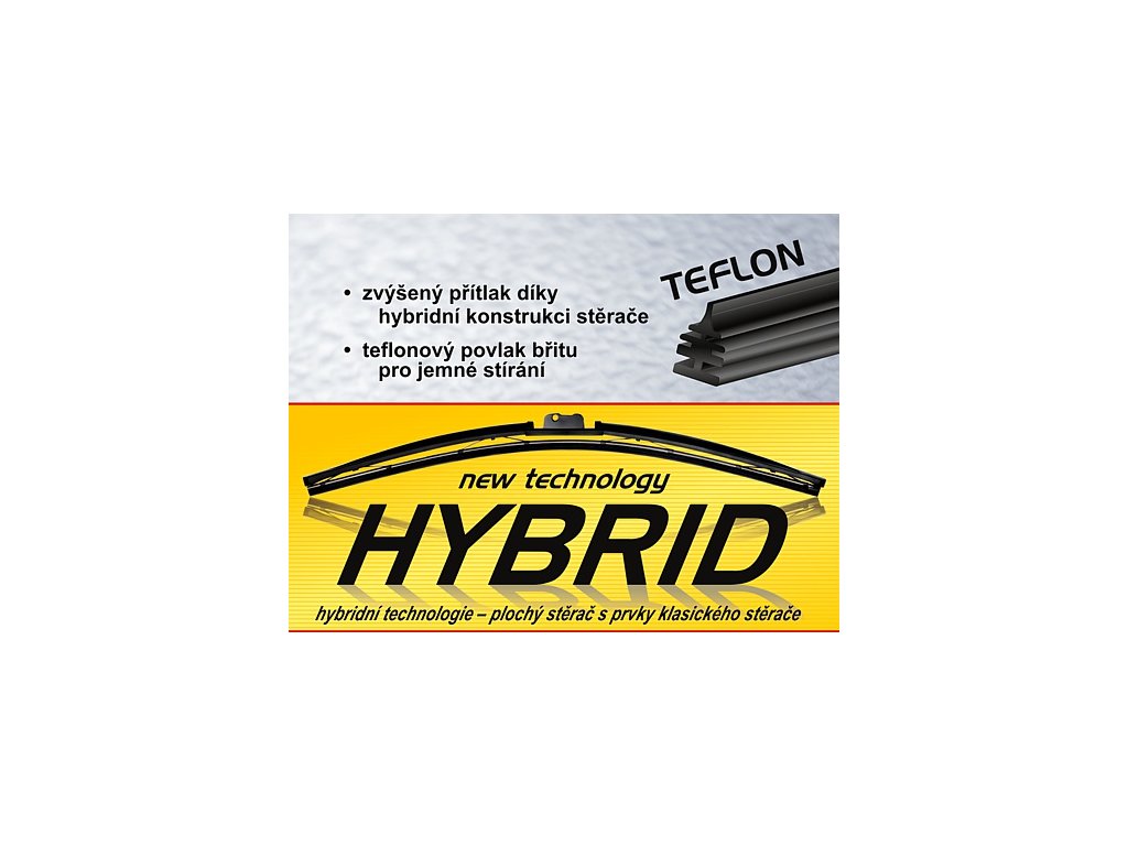 Stěrač hybridní konstrukce, nová technologie - plochý stěrač s prvky klasického stěrače.