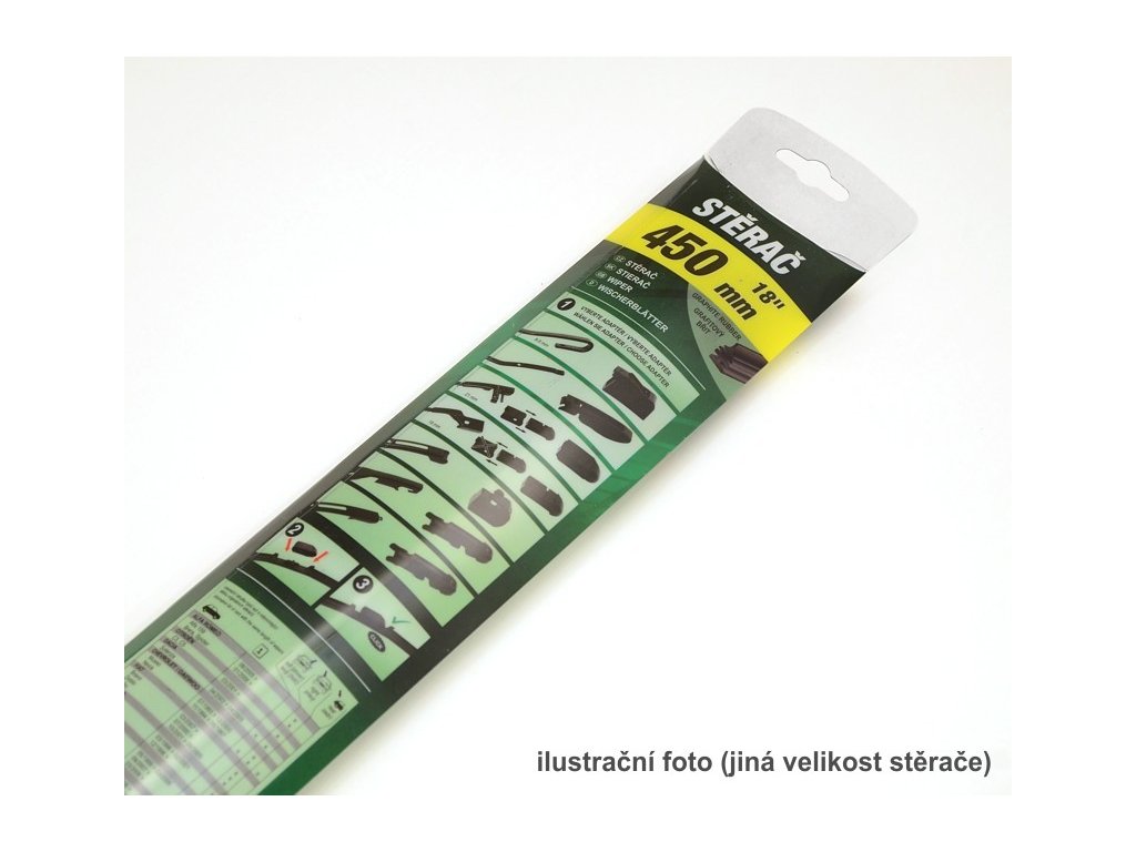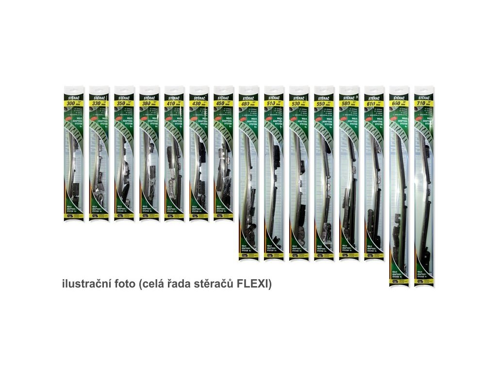 Plochý stěrač FLAT FLEXI, baleno á 1 ks v průhledném plastovém obalu. Obsahuje celou řadu adaptérů, díky kterým je snadné stěrač upevnit na většinu běžně používaných zakončení ramének stěračů. Stěrač je vybaven grafitovým břitem pro výtečné stírání.